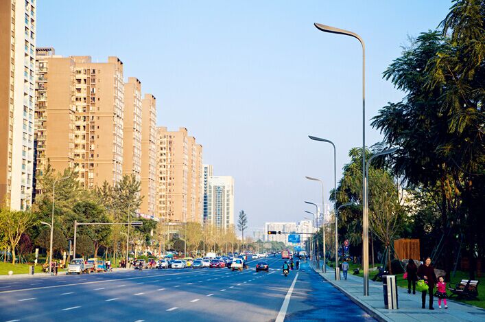 迎賓大道,是北京王府井新區的重要交通要道。2016年3月,耀星光電公司為王府井大道生產制作、安裝了147盞雙葉燈。雙葉燈,是以象征禮節的“茶葉”為設計元素,融入現代簡潔的線條,時尚有韻味,外觀美麗大方,環保節能。燈頭采用茶葉瓣的形式,實現了燈桿與燈頭的實體連接,在原有景觀照明基礎上,增加了功能照明,使功能照明和景觀照明完美結合。該款燈在王府井大道的運用,寓意歡迎“自遠方來的朋友”。